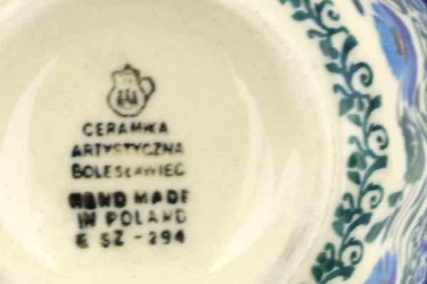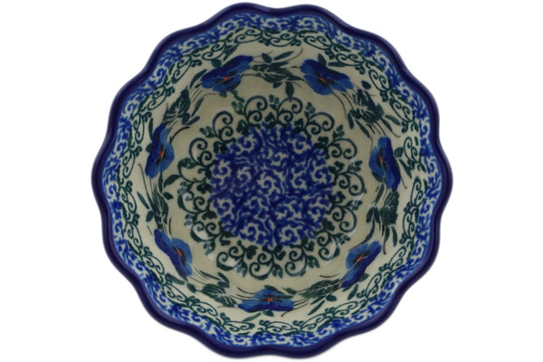 This Blue Pansy 4" Fluted Bowl was handmade and hand decorated in Boleslawiec, Poland by skilled artisans according to old traditional methods. This Polish stoneware is microwave, dishwasher, freezer, and oven safe up to 480°F. It does not contain lead or cadmium. It is part of the Blue Pansy Collection.