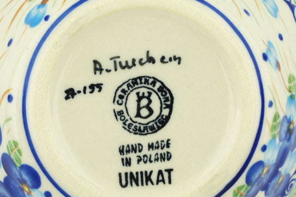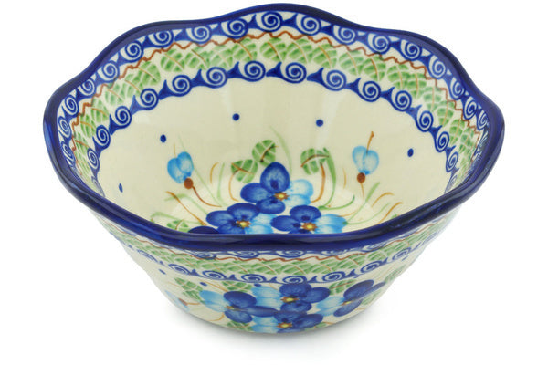 This Blue Pansy 7" Scalloped Fluted Bowl was handmade and hand decorated in Boleslawiec, Poland by skilled artisans according to old traditional methods. This Polish stoneware is microwave, dishwasher, freezer, and oven safe up to 480°F. It does not contain lead or cadmium. It is part of the Blue Pansy Collection.