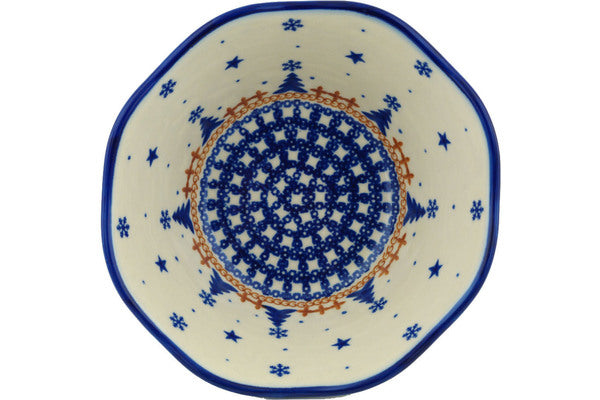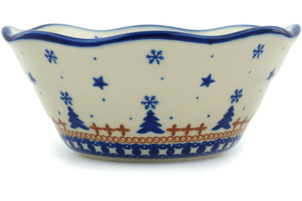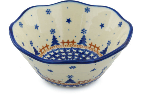 This Winter Snow 7" Scalloped Fluted Bowl was handmade and hand decorated in Boleslawiec, Poland by skilled artisans according to old traditional methods. This Polish stoneware is microwave, dishwasher, freezer, and oven safe up to 480°F. It does not contain lead or cadmium. It is part of the Winter Snow Collection.