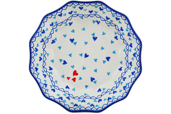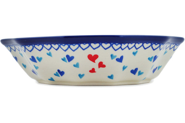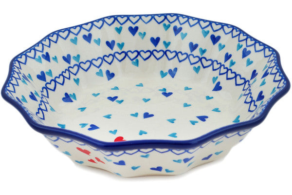 This Hearts Of Love 9" Fluted Bowl was handmade and hand decorated in Boleslawiec, Poland by skilled artisans according to old traditional methods. This Polish stoneware is microwave, dishwasher, freezer, and oven safe up to 480°F. It does not contain lead or cadmium. It is part of the Hearts Of Love Collection.