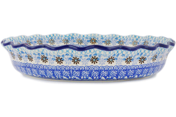 This Crocheted Granny Squares 10" Fluted Pie Dish was handmade and hand decorated in Boleslawiec, Poland by skilled artisans according to old traditional methods. This Polish stoneware is microwave, dishwasher, freezer, and oven safe up to 480°F. It does not contain lead or cadmium. It is part of the Crocheted Granny Squares Collection.