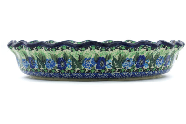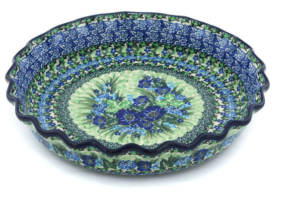 This Moody Blues 10" Fluted Pie Dish was handmade and hand decorated in Boleslawiec, Poland by skilled artisans according to old traditional methods. This is a Polish pottery Signature Unikat, which means that it has been hand painted with both sponges and brushes and it is signed by the artist who painted it. Unikat pieces are the most intricate works of art. Larger Unikat items take hours of very careful work to finish. This Polish stoneware is microwave, dishwasher, freezer, and oven safe up to 480°F. It does not contain lead or cadmium. It is part of the Moody Blues Collection.