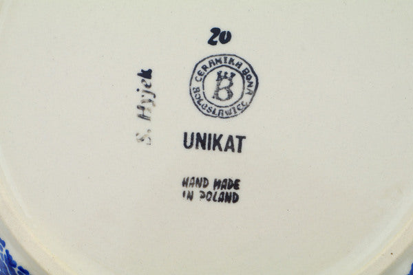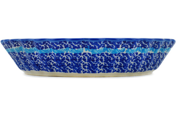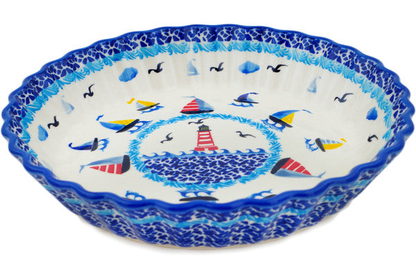 This Sea Sights 10" Fluted Pie Dish was handmade and hand decorated in Boleslawiec, Poland by skilled artisans according to old traditional methods. This is a Polish pottery Signature Unikat, which means that it has been hand painted with both sponges and brushes and it is signed by the artist who painted it. Unikat pieces are the most intricate works of art. Larger Unikat items take hours of very careful work to finish. This Polish stoneware is microwave, dishwasher, freezer, and oven safe up to 480°F. It does not contain lead or cadmium. It is part of the Sea Sights Collection.