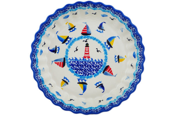 Fluted Pie Dish 10" Sea Sights Theme UNIKAT