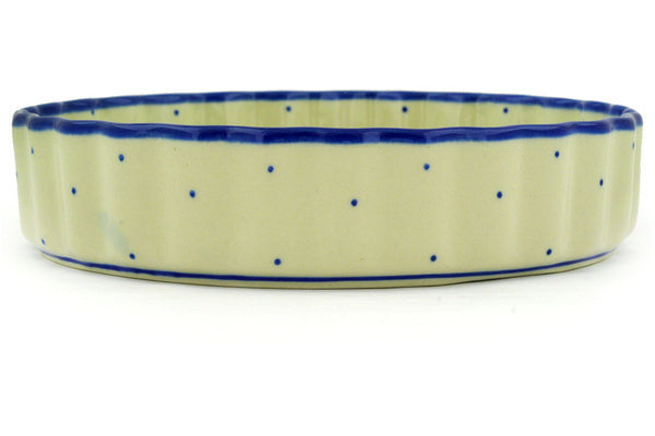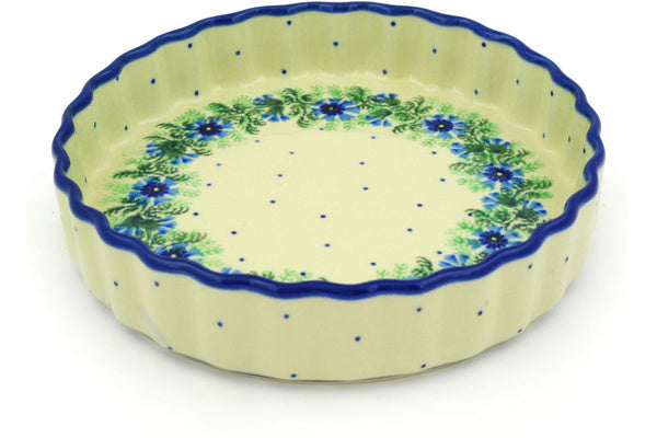 This Blue Bell Wreath 8" Fluted Pie Dish was handmade and hand decorated in Boleslawiec, Poland by skilled artisans according to old traditional methods. This Polish stoneware is microwave, dishwasher, freezer, and oven safe up to 480°F. It does not contain lead or cadmium. It is part of the Blue Bell Wreath Collection.
