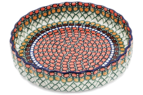 This Orange Tranquility 8" Fluted Pie Dish was handmade and hand decorated in Boleslawiec, Poland by skilled artisans according to old traditional methods. This is a Polish pottery Signature Unikat, which means that it has been hand painted with both sponges and brushes and it is signed by the artist who painted it. Unikat pieces are the most intricate works of art. Larger Unikat items take hours of very careful work to finish. This Polish stoneware is microwave, dishwasher, freezer, and oven safe up to 480°F. It does not contain lead or cadmium. It is part of the Orange Tranquility Collection.