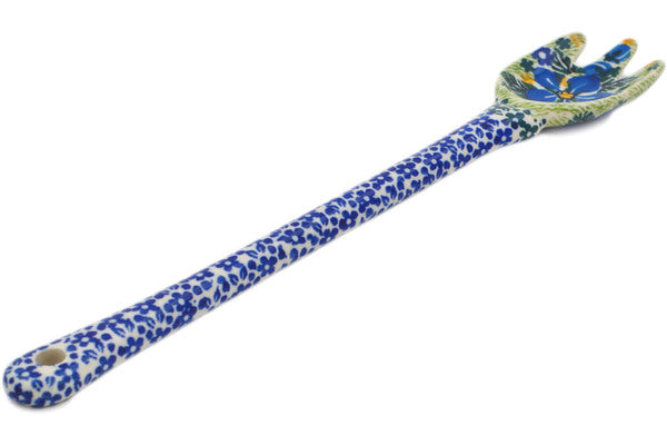 This Floral Blue Dreams 12" Fork was handmade and hand decorated in Boleslawiec, Poland by skilled artisans according to old traditional methods. This is a Polish pottery Signature Unikat, which means that it has been hand painted with both sponges and brushes and it is signed by the artist who painted it. Unikat pieces are the most intricate works of art. Larger Unikat items take hours of very careful work to finish. This Polish stoneware is microwave, dishwasher, freezer, and oven safe up to 480°F. It does not contain lead or cadmium. It is part of the Floral Blue Dreams Collection.