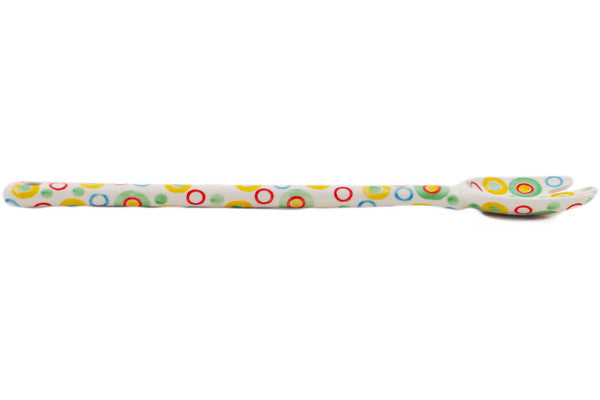 This Retro Olives 12" Fork was handmade and hand decorated in Boleslawiec, Poland by skilled artisans according to old traditional methods. This is a Polish pottery Signature Unikat, which means that it has been hand painted with both sponges and brushes and it is signed by the artist who painted it. Unikat pieces are the most intricate works of art. Larger Unikat items take hours of very careful work to finish. This Polish stoneware is microwave, dishwasher, freezer, and oven safe up to 480°F. It does not contain lead or cadmium. It is part of the Retro Olives Collection.