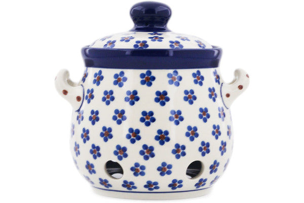 This Daisy Dots 6" Garlic and Onion Jar was handmade and hand decorated in Boleslawiec, Poland by skilled artisans according to old traditional methods. This Polish stoneware is microwave, dishwasher, freezer, and oven safe up to 480°F. It does not contain lead or cadmium. It is part of the Daisy Dots Collection.