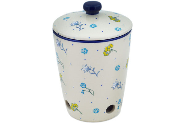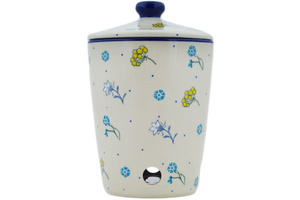 This Caught In The Wind 7" Garlic and Onion Jar was handmade and hand decorated in Boleslawiec, Poland by skilled artisans according to old traditional methods. This Polish stoneware is microwave, dishwasher, freezer, and oven safe up to 480°F. It does not contain lead or cadmium. It is part of the Caught In The Wind Collection.