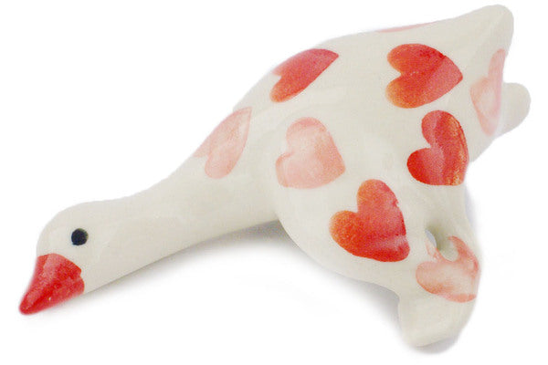 This Loving You 4" Goose Figurine was handmade and hand decorated in Boleslawiec, Poland by skilled artisans according to old traditional methods. This Polish stoneware is microwave, dishwasher, freezer, and oven safe up to 480°F. It does not contain lead or cadmium. It is part of the Loving You Collection.