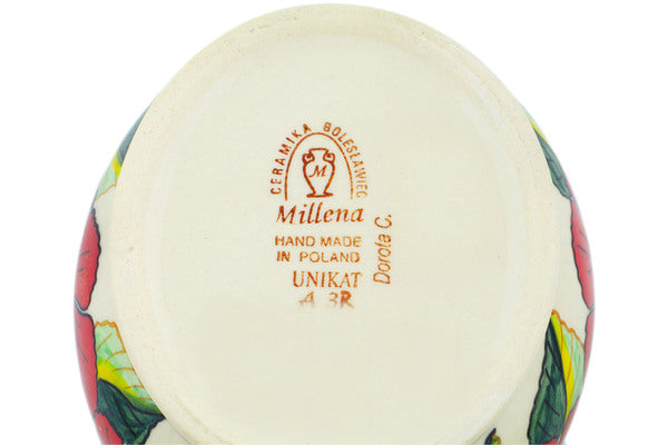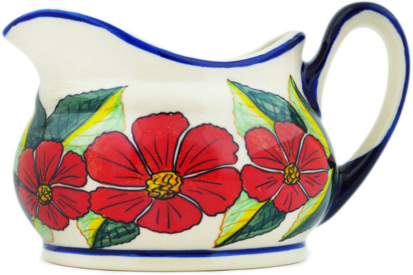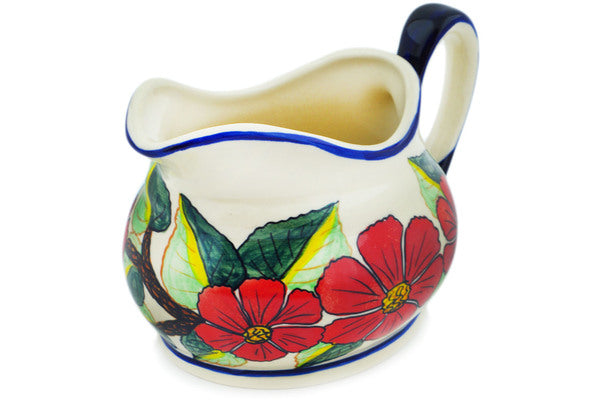 This Poinsettia Paradise 20 oz Gravy Boat was handmade and hand decorated in Boleslawiec, Poland by skilled artisans according to old traditional methods. This is a Polish pottery Signature Unikat, which means that it has been hand painted with both sponges and brushes and it is signed by the artist who painted it. Unikat pieces are the most intricate works of art. Larger Unikat items take hours of very careful work to finish. This Polish stoneware is microwave, dishwasher, freezer, and oven safe up to 480°F. It does not contain lead or cadmium. It is part of the Poinsettia Paradise Collection.