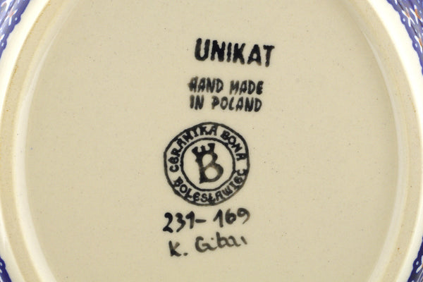 This Blue Cress Gravy Boat with Saucer was handmade and hand decorated in Boleslawiec, Poland by skilled artisans according to old traditional methods. This is a Polish pottery Signature Unikat, which means that it has been hand painted with both sponges and brushes and it is signed by the artist who painted it. Unikat pieces are the most intricate works of art. Larger Unikat items take hours of very careful work to finish. This Polish stoneware is microwave, dishwasher, freezer, and oven safe up to 480°F. It does not contain lead or cadmium. It is part of the Blue Cress Collection.