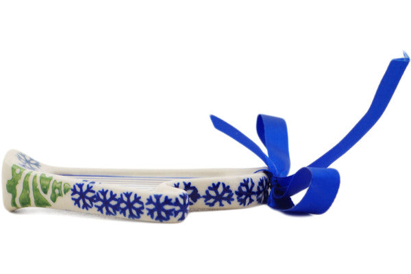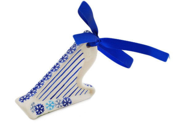 This Ring Around The Reindeer 4" Harp Ornament was handmade and hand decorated in Boleslawiec, Poland by skilled artisans according to old traditional methods. This Polish stoneware is microwave, dishwasher, freezer, and oven safe up to 480°F. It does not contain lead or cadmium. It is part of the Ring Around The Reindeer Collection.