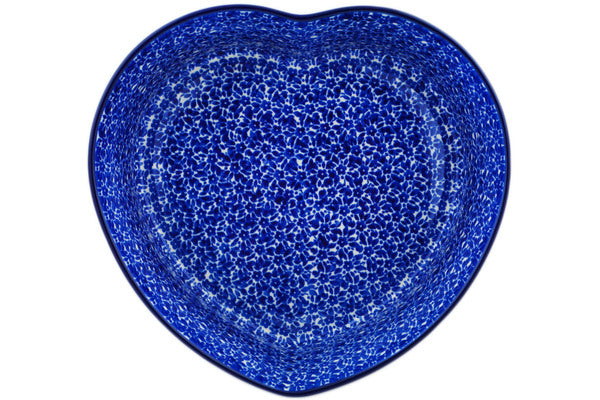 This Choppy Waters 10" Heart Shaped Bowl was handmade and hand decorated in Boleslawiec, Poland by skilled artisans according to old traditional methods. This Polish stoneware is microwave, dishwasher, freezer, and oven safe up to 480°F. It does not contain lead or cadmium. It is part of the Choppy Waters Collection.