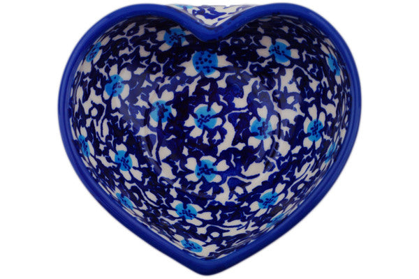 This Flowers On The Lake 4" Heart Shaped Bowl was handmade and hand decorated in Boleslawiec, Poland by skilled artisans according to old traditional methods. This Polish stoneware is microwave, dishwasher, freezer, and oven safe up to 480°F. It does not contain lead or cadmium. It is part of the Flowers On The Lake Collection.