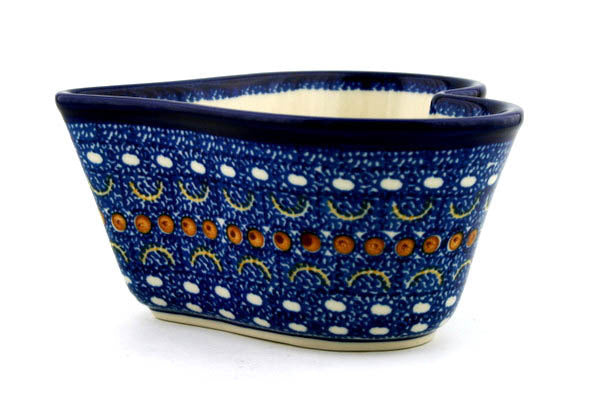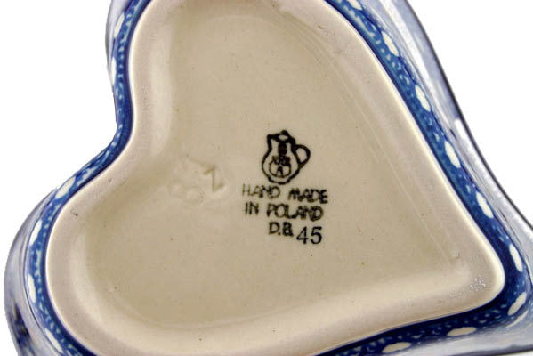 This Blue Horizons 6" Heart Shaped Bowl was handmade and hand decorated in Boleslawiec, Poland by skilled artisans according to old traditional methods. This Polish stoneware is microwave, dishwasher, freezer, and oven safe up to 480°F. It does not contain lead or cadmium. It is part of the Blue Horizons Collection.