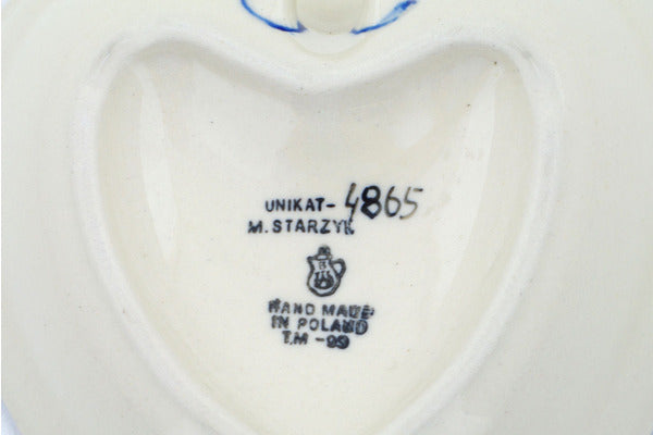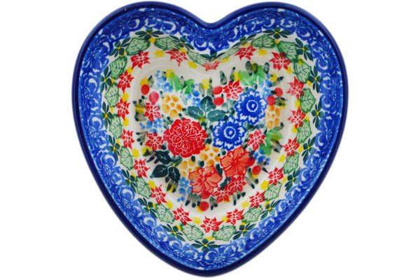 This Red Bouquet 6" Heart Shaped Bowl was handmade and hand decorated in Boleslawiec, Poland by skilled artisans according to old traditional methods. This is a Polish pottery Signature Unikat, which means that it has been hand painted with both sponges and brushes and it is signed by the artist who painted it. Unikat pieces are the most intricate works of art. Larger Unikat items take hours of very careful work to finish. This Polish stoneware is microwave, dishwasher, freezer, and oven safe up to 480°F. It does not contain lead or cadmium. It is part of the Red Bouquet Collection.