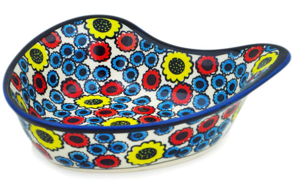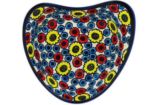 This Flower Freedom 7" Heart Shaped Bowl was handmade and hand decorated in Boleslawiec, Poland by skilled artisans according to old traditional methods. This Polish stoneware is microwave, dishwasher, freezer, and oven safe up to 480°F. It does not contain lead or cadmium. It is part of the Flower Freedom Collection.