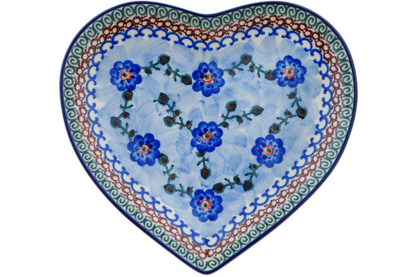 Heart Shaped Platter 9" Blue Poppy Circle Theme UNIKAT