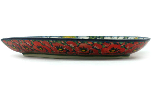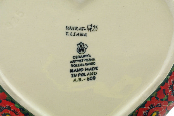 This Sweet Red Petals 9" Heart Shaped Platter was handmade and hand decorated in Boleslawiec, Poland by skilled artisans according to old traditional methods. This is a Polish pottery Signature Unikat, which means that it has been hand painted with both sponges and brushes and it is signed by the artist who painted it. Unikat pieces are the most intricate works of art. Larger Unikat items take hours of very careful work to finish. This Polish stoneware is microwave, dishwasher, freezer, and oven safe up to 480°F. It does not contain lead or cadmium. It is part of the Sweet Red Petals Collection.