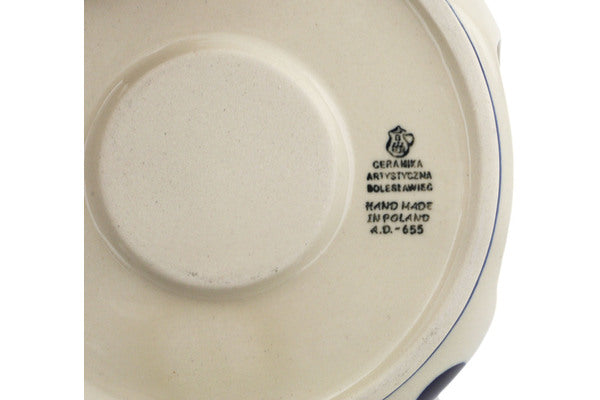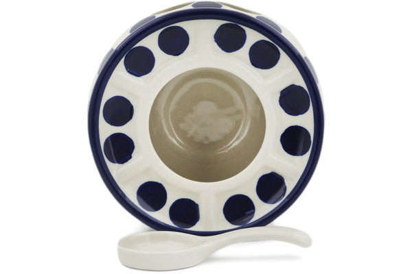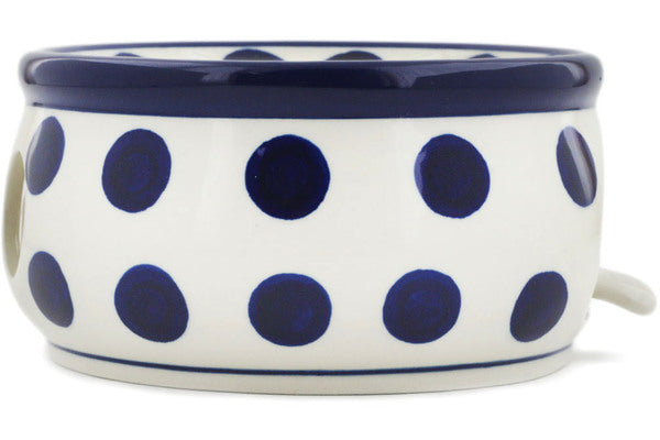 This Bold Blue Dots 6" Heater with Candle Holder was handmade and hand decorated in Boleslawiec, Poland by skilled artisans according to old traditional methods. This Polish stoneware is microwave, dishwasher, freezer, and oven safe up to 480°F. It does not contain lead or cadmium. It is part of the Bold Blue Dots Collection.