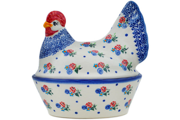 Hen Shaped Jar 8" Dancing Flowers Theme UNIKAT