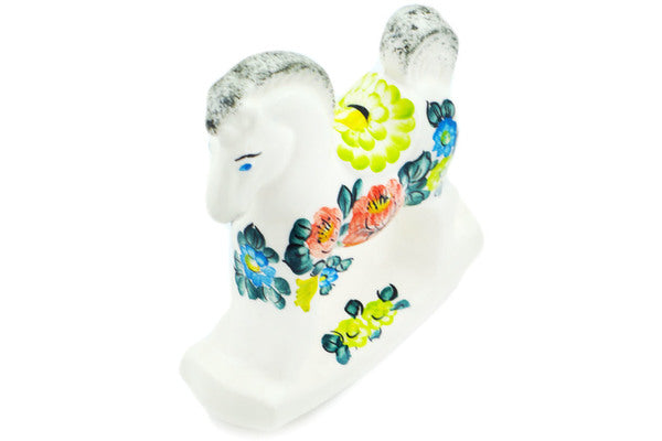 This Blooming Roses 5" Horse Figurine was handmade and hand decorated in Boleslawiec, Poland by skilled artisans according to old traditional methods. This Polish stoneware is microwave, dishwasher, freezer, and oven safe up to 480°F. It does not contain lead or cadmium. It is part of the Blooming Roses Collection.