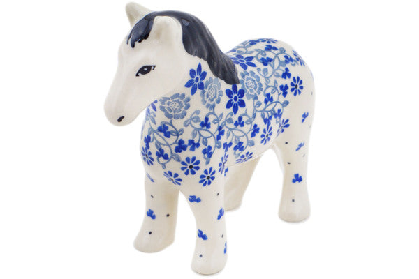 This Blue Country Field 6" Horse Figurine was handmade and hand decorated in Boleslawiec, Poland by skilled artisans according to old traditional methods. This Polish stoneware is microwave, dishwasher, freezer, and oven safe up to 480°F. It does not contain lead or cadmium. It is part of the Blue Country Field Collection.