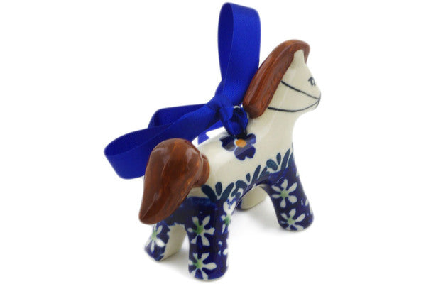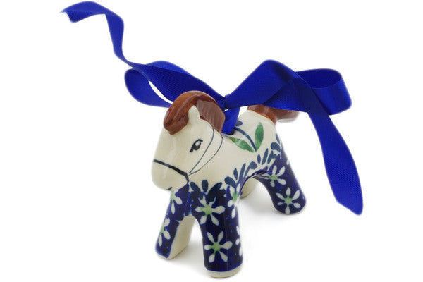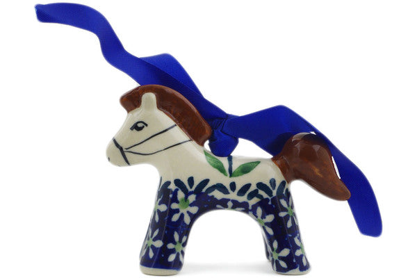 This Mariposa Lily 3" Horse Ornament was handmade and hand decorated in Boleslawiec, Poland by skilled artisans according to old traditional methods. This Polish stoneware is microwave, dishwasher, freezer, and oven safe up to 480°F. It does not contain lead or cadmium. It is part of the Mariposa Lily Collection.