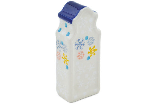 This Snow Bliss 4" House Figurine was handmade and hand decorated in Boleslawiec, Poland by skilled artisans according to old traditional methods. This Polish stoneware is microwave, dishwasher, freezer, and oven safe up to 480°F. It does not contain lead or cadmium. It is part of the Snow Bliss Collection.
