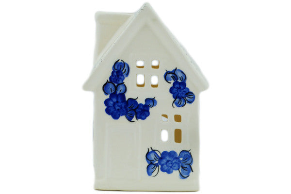 This Lagoon 6" House Shaped Candle Holder was handmade and hand decorated in Boleslawiec, Poland by skilled artisans according to old traditional methods. This Polish stoneware is microwave, dishwasher, freezer, and oven safe up to 480°F. It does not contain lead or cadmium. It is part of the Lagoon Collection.