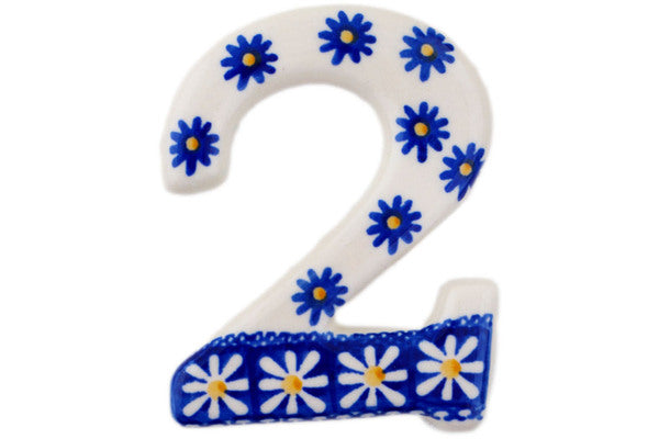 This Sweet Daisy 4" House Number 2 (Two) was handmade and hand decorated in Boleslawiec, Poland by skilled artisans according to old traditional methods. This Polish stoneware is microwave, dishwasher, freezer, and oven safe up to 480°F. It does not contain lead or cadmium. It is part of the Sweet Daisy Collection.