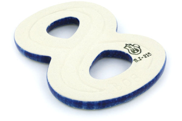 This Blue Poppies 4-inch House Number EIGHT (8) was handmade and hand decorated in Boleslawiec, Poland by skilled artisans according to old traditional methods. This Polish stoneware is microwave, dishwasher, freezer, and oven safe up to 480°F. It does not contain lead or cadmium. It is part of the Blue Poppies Collection.