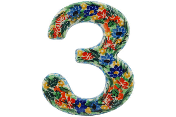 This Dream Bouquet 4-inch House Number THREE (3) was handmade and hand decorated in Boleslawiec, Poland by skilled artisans according to old traditional methods. This is a Polish pottery Signature Unikat, which means that it has been hand painted with both sponges and brushes and it is signed by the artist who painted it. Unikat pieces are the most intricate works of art. Larger Unikat items take hours of very careful work to finish. This Polish stoneware is microwave, dishwasher, freezer, and oven safe up to 480°F. It does not contain lead or cadmium. It is part of the Dream Bouquet Collection.