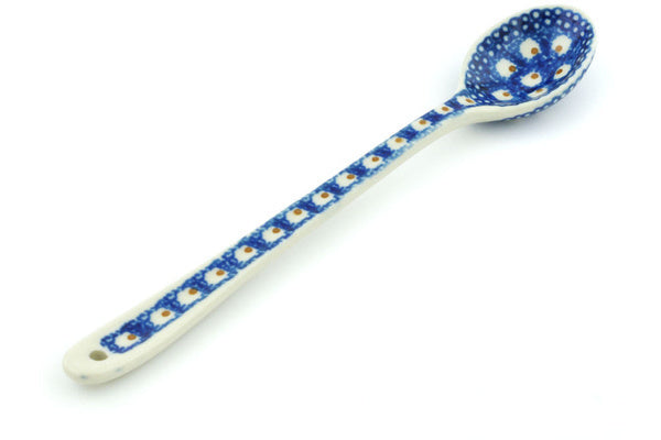 This Brown Eyed Peacock 7" Iced Tea Spoon was handmade and hand decorated in Boleslawiec, Poland by skilled artisans according to old traditional methods. This Polish stoneware is microwave, dishwasher, freezer, and oven safe up to 480°F. It does not contain lead or cadmium. It is part of the Brown Eyed Peacock Collection.