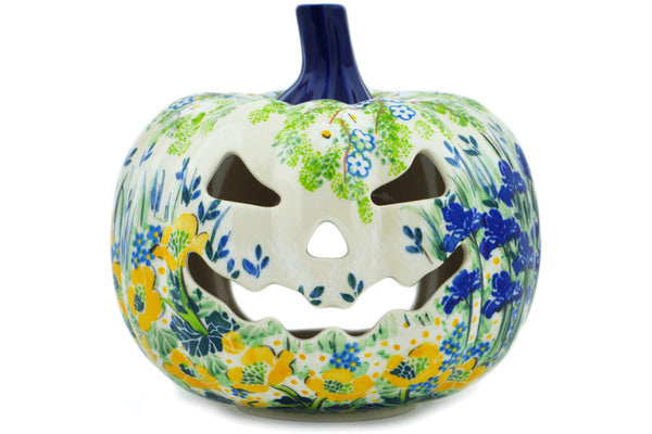 This Peaceful Garden 7" Jack O Lantern Candle Holder was handmade and hand decorated in Boleslawiec, Poland by skilled artisans according to old traditional methods. This is a Polish pottery Signature Unikat, which means that it has been hand painted with both sponges and brushes and it is signed by the artist who painted it. Unikat pieces are the most intricate works of art. Larger Unikat items take hours of very careful work to finish. This Polish stoneware is microwave, dishwasher, freezer, and oven safe up to 480°F. It does not contain lead or cadmium. It is part of the Peaceful Garden Collection.