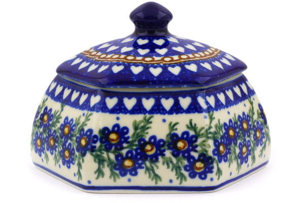 This Mother's Love 4" Jar with Lid was handmade and hand decorated in Boleslawiec, Poland by skilled artisans according to old traditional methods. This is a Polish pottery Signature Unikat, which means that it has been hand painted with both sponges and brushes and it is signed by the artist who painted it. Unikat pieces are the most intricate works of art. Larger Unikat items take hours of very careful work to finish. This Polish stoneware is microwave, dishwasher, freezer, and oven safe up to 480°F. It does not contain lead or cadmium. It is part of the Mother's Love Collection.