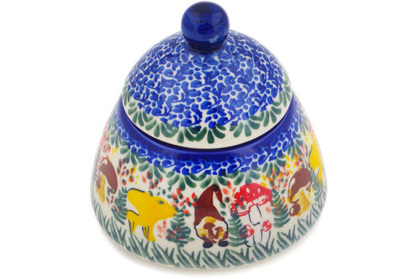 This Mushroom Love 4" Jar with Lid was handmade and hand decorated in Boleslawiec, Poland by skilled artisans according to old traditional methods. This is a Polish pottery Signature Unikat, which means that it has been hand painted with both sponges and brushes and it is signed by the artist who painted it. Unikat pieces are the most intricate works of art. Larger Unikat items take hours of very careful work to finish. This Polish stoneware is microwave, dishwasher, freezer, and oven safe up to 480°F. It does not contain lead or cadmium. It is part of the Mushroom Love Collection.