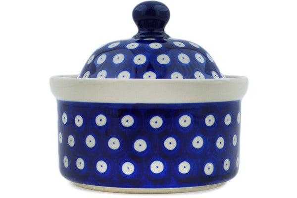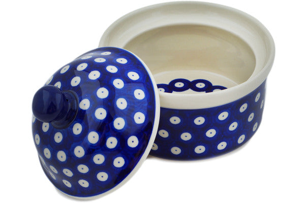 This Blue Eyes 5" Jar with Lid was handmade and hand decorated in Boleslawiec, Poland by skilled artisans according to old traditional methods. This Polish stoneware is microwave, dishwasher, freezer, and oven safe up to 480°F. It does not contain lead or cadmium. It is part of the Blue Eyes Collection.