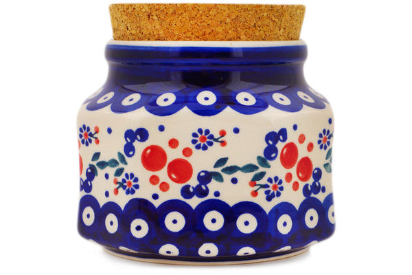 This Burst Of Berries 5" Jar with Lid was handmade and hand decorated in Boleslawiec, Poland by skilled artisans according to old traditional methods. This Polish stoneware is microwave, dishwasher, freezer, and oven safe up to 480°F. It does not contain lead or cadmium. It is part of the Burst Of Berries Collection.