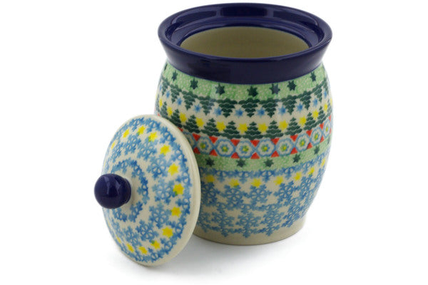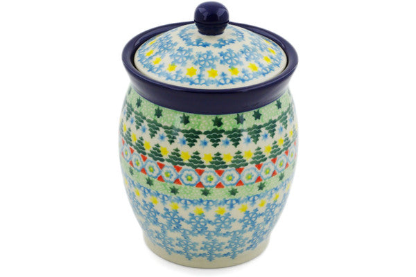 This Christmas Forest 5" Jar with Lid was handmade and hand decorated in Boleslawiec, Poland by skilled artisans according to old traditional methods. This is a Polish pottery Signature Unikat, which means that it has been hand painted with both sponges and brushes and it is signed by the artist who painted it. Unikat pieces are the most intricate works of art. Larger Unikat items take hours of very careful work to finish. This Polish stoneware is microwave, dishwasher, freezer, and oven safe up to 480°F. It does not contain lead or cadmium. It is part of the Christmas Forest Collection.