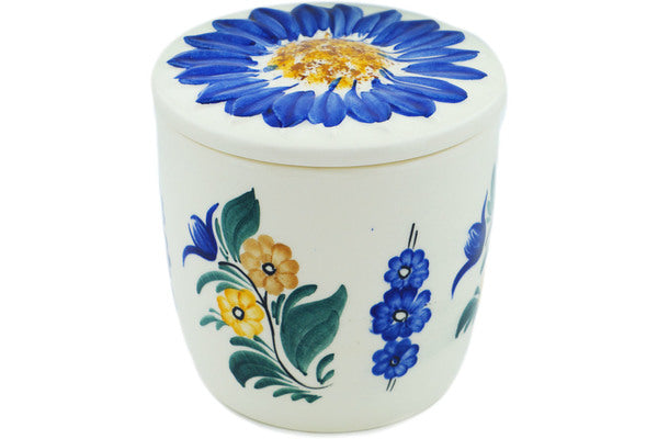 This Fleeting Moment 5" Jar with Lid was handmade and hand decorated in Boleslawiec, Poland by skilled artisans according to old traditional methods. This Polish stoneware is microwave, dishwasher, freezer, and oven safe up to 480°F. It does not contain lead or cadmium. It is part of the Fleeting Moment Collection.