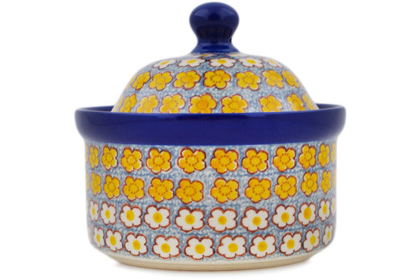 This Popcorn Daisies 5" Jar with Lid was handmade and hand decorated in Boleslawiec, Poland by skilled artisans according to old traditional methods. This is a Polish pottery Signature Unikat, which means that it has been hand painted with both sponges and brushes and it is signed by the artist who painted it. Unikat pieces are the most intricate works of art. Larger Unikat items take hours of very careful work to finish. This Polish stoneware is microwave, dishwasher, freezer, and oven safe up to 480°F. It does not contain lead or cadmium. It is part of the Popcorn Daisies Collection.