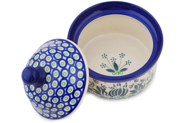 This Weeping Tulips 5" Jar with Lid was handmade and hand decorated in Boleslawiec, Poland by skilled artisans according to old traditional methods. This is a Polish pottery Signature Unikat, which means that it has been hand painted with both sponges and brushes and it is signed by the artist who painted it. Unikat pieces are the most intricate works of art. Larger Unikat items take hours of very careful work to finish. This Polish stoneware is microwave, dishwasher, freezer, and oven safe up to 480°F. It does not contain lead or cadmium. It is part of the Weeping Tulips Collection.