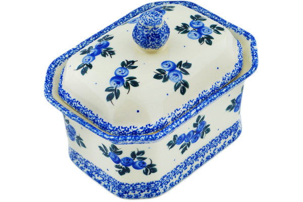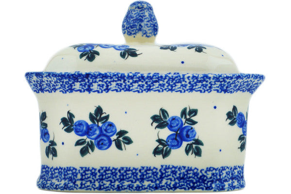 This Blue Berry Special 6" Jar with Lid was handmade and hand decorated in Boleslawiec, Poland by skilled artisans according to old traditional methods. This is a Polish pottery Signature Unikat, which means that it has been hand painted with both sponges and brushes and it is signed by the artist who painted it. Unikat pieces are the most intricate works of art. Larger Unikat items take hours of very careful work to finish. This Polish stoneware is microwave, dishwasher, freezer, and oven safe up to 480°F. It does not contain lead or cadmium. It is part of the Blue Berry Special Collection.