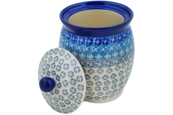 This Blue-tiful Day 6" Jar with Lid was handmade and hand decorated in Boleslawiec, Poland by skilled artisans according to old traditional methods. This is a Polish pottery Signature Unikat, which means that it has been hand painted with both sponges and brushes and it is signed by the artist who painted it. Unikat pieces are the most intricate works of art. Larger Unikat items take hours of very careful work to finish. This Polish stoneware is microwave, dishwasher, freezer, and oven safe up to 480°F. It does not contain lead or cadmium. It is part of the Blue-tiful Day Collection.