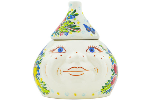This Retro Garden 6" Jar with Lid was handmade and hand decorated in Boleslawiec, Poland by skilled artisans according to old traditional methods. This is a Polish pottery Signature Unikat, which means that it has been hand painted with both sponges and brushes and it is signed by the artist who painted it. Unikat pieces are the most intricate works of art. Larger Unikat items take hours of very careful work to finish. This Polish stoneware is microwave, dishwasher, freezer, and oven safe up to 480°F. It does not contain lead or cadmium. It is part of the Retro Garden Collection.