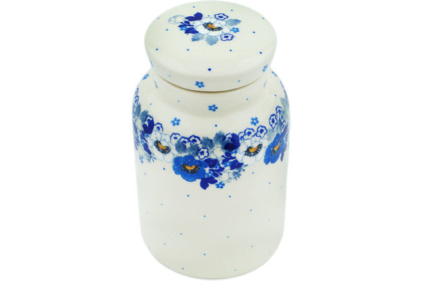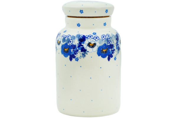 This Blue Spring 7" Jar with Lid was handmade and hand decorated in Boleslawiec, Poland by skilled artisans according to old traditional methods. This Polish stoneware is microwave, dishwasher, freezer, and oven safe up to 480°F. It does not contain lead or cadmium. It is part of the Blue Spring Collection.