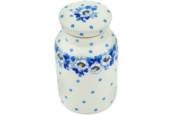 This Blue Spring 7" Jar with Lid was handmade and hand decorated in Boleslawiec, Poland by skilled artisans according to old traditional methods. This Polish stoneware is microwave, dishwasher, freezer, and oven safe up to 480°F. It does not contain lead or cadmium. It is part of the Blue Spring Collection.